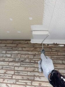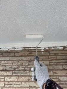 軒天の状況によってはパテ補修をして~上塗り2回!