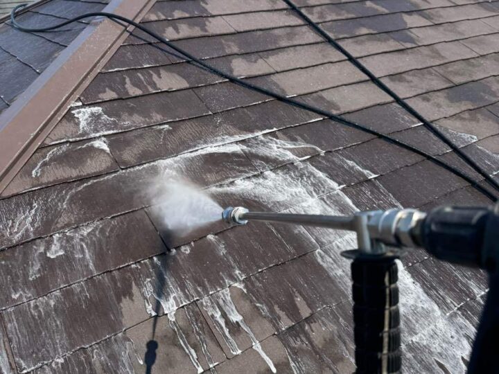 バイオ洗剤を散布して高圧の水で一気に汚れを落としていきます。