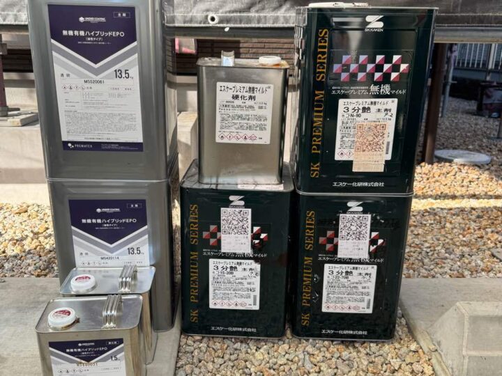 | 施工内容詳細 | ★施工塗料★ 【外壁塗装】 下塗り・・・無機有機ハイブリッドEPO 上塗り・・・パーフェクトトップ 【軒天塗装】 下塗り・・・ケンエース 上塗り・・・ケンエース 【付帯物塗装】 下塗り・・・無機塗料 上塗り・・・無機塗料 【屋根塗装】 下塗り・・・無機有機ハイブリッドEPO 上塗り・・・ファインパーフェクトベスト  |